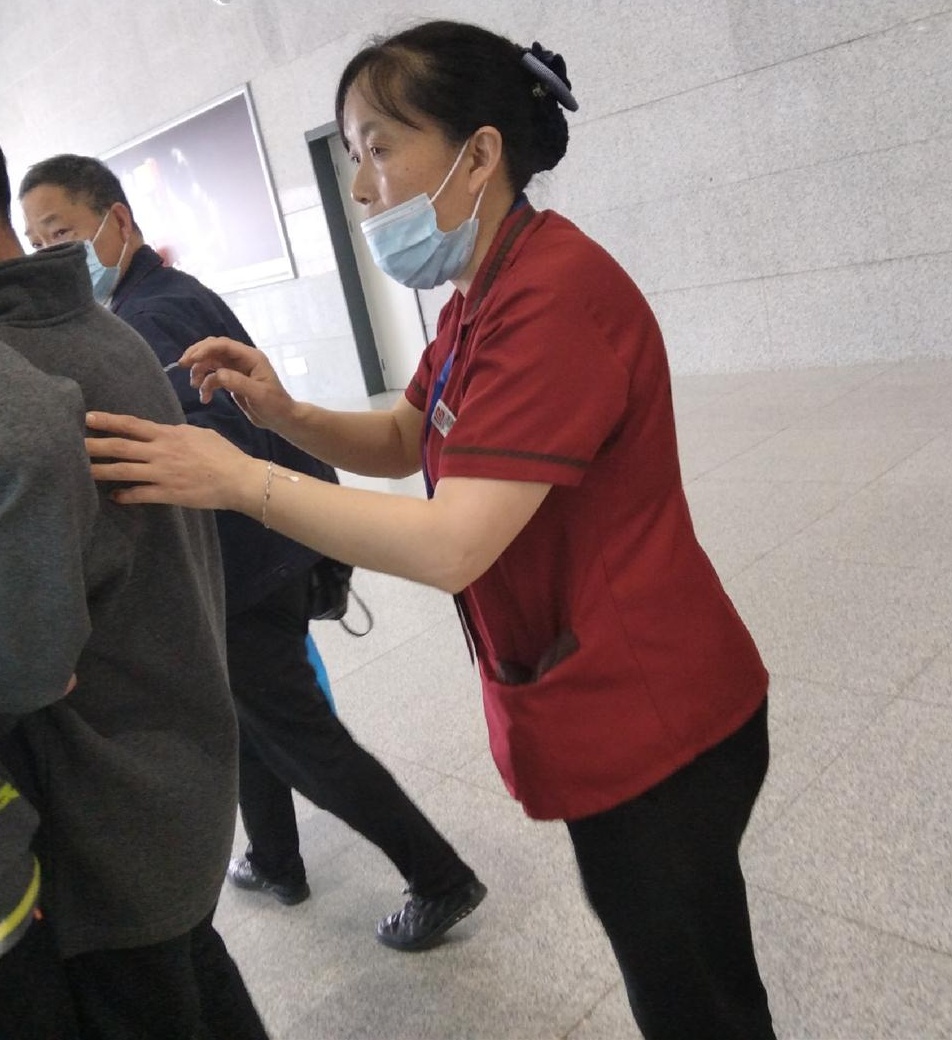 陈安翠拉着旅客的手,和蔼的说:“您不要担心,现在很安全,您现在所在的站是宜宾西站,这是您的目的地吗?”