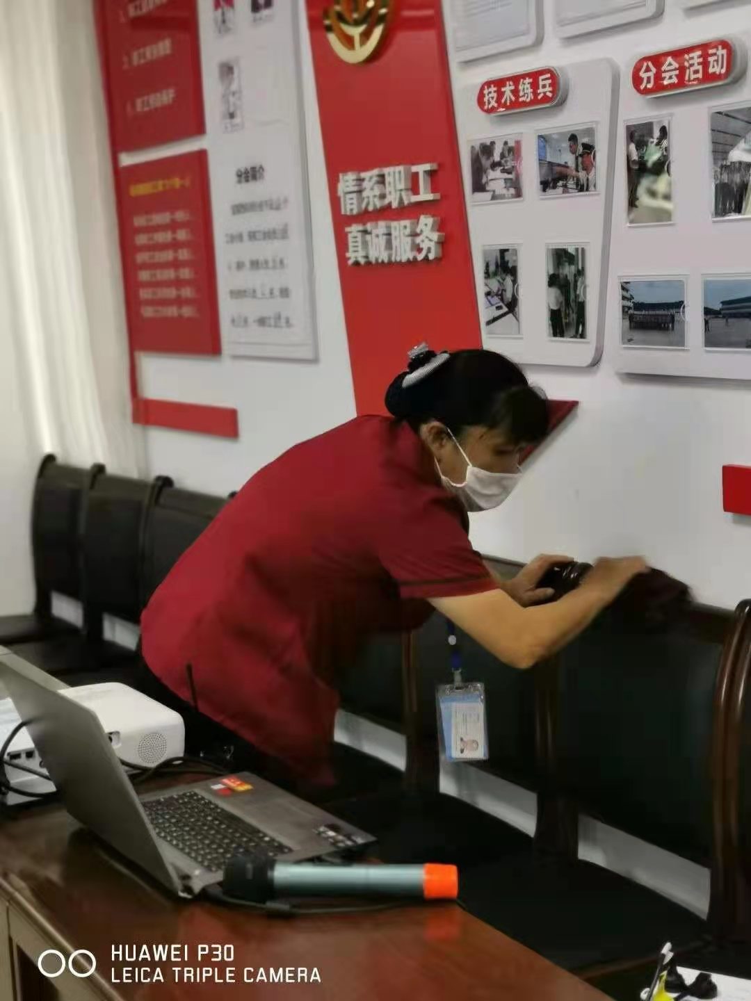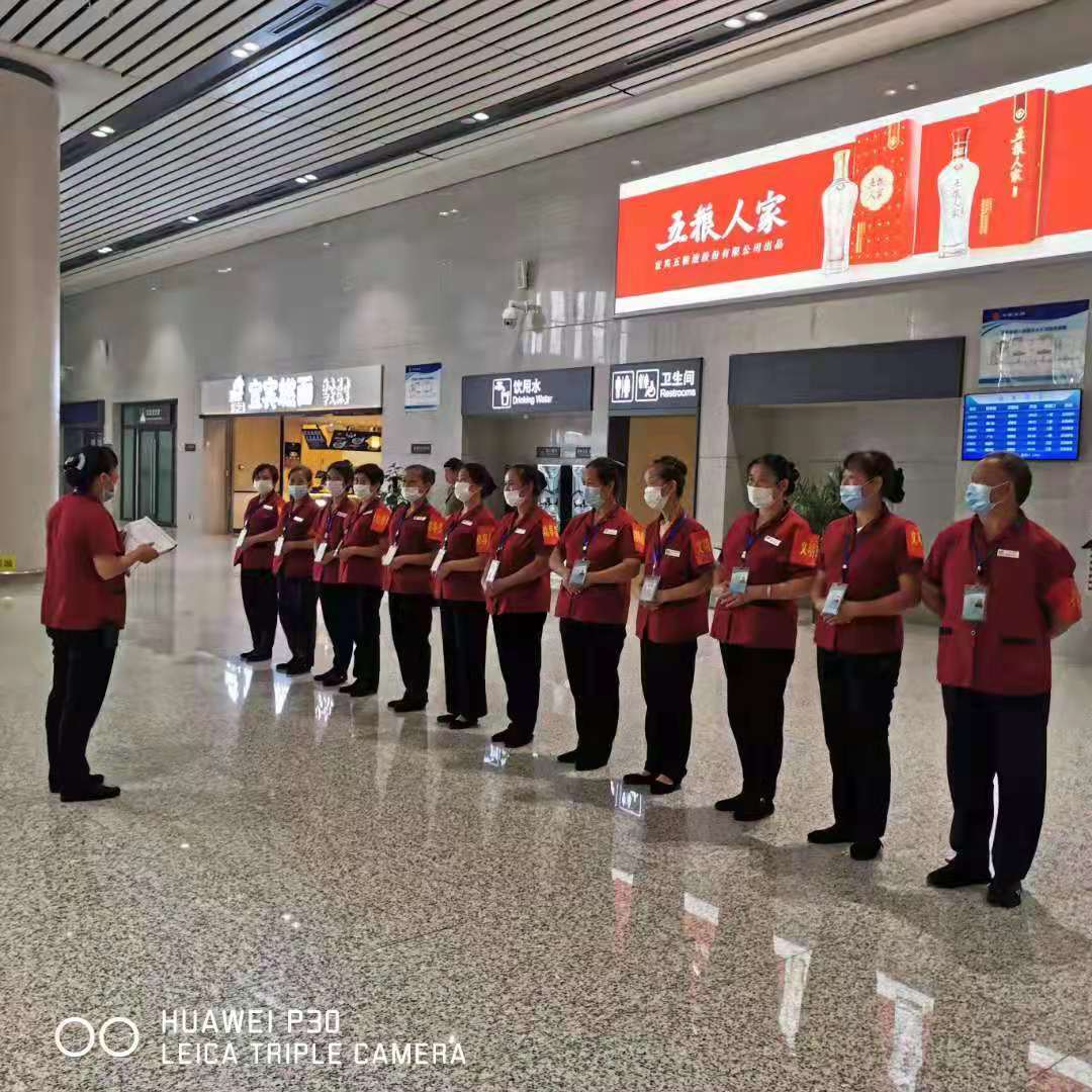 2021年4月23日下午15点多,我司宜宾站保洁领班陈安翠正在为保洁员工安排接下来的细节计划卫生工作。