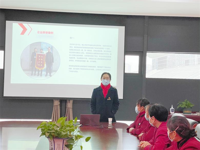 2021年12月1日,我司展开了企业文化和高铁服务意识培训会。培训邀请车站领导发表讲话,为我们提出宝贵建议,使我们的培训更有方向,工作细节针对性更强。本次企业文化和高铁服务意识培训会由我司田春莉副总担任讲师,我司绵泸高铁保洁项目管理人员韩薇、王彬彬分别主持会议,主管林锡会、钟七芬、张志英参加培训,绵泸高铁项目员工参与。